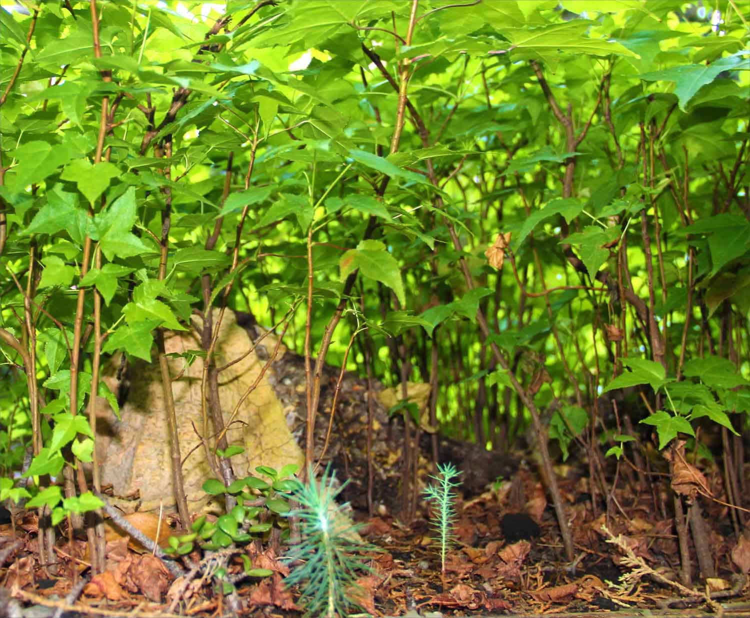 Each miniature forest is created with a single tree species, and others with a mixture of several species.